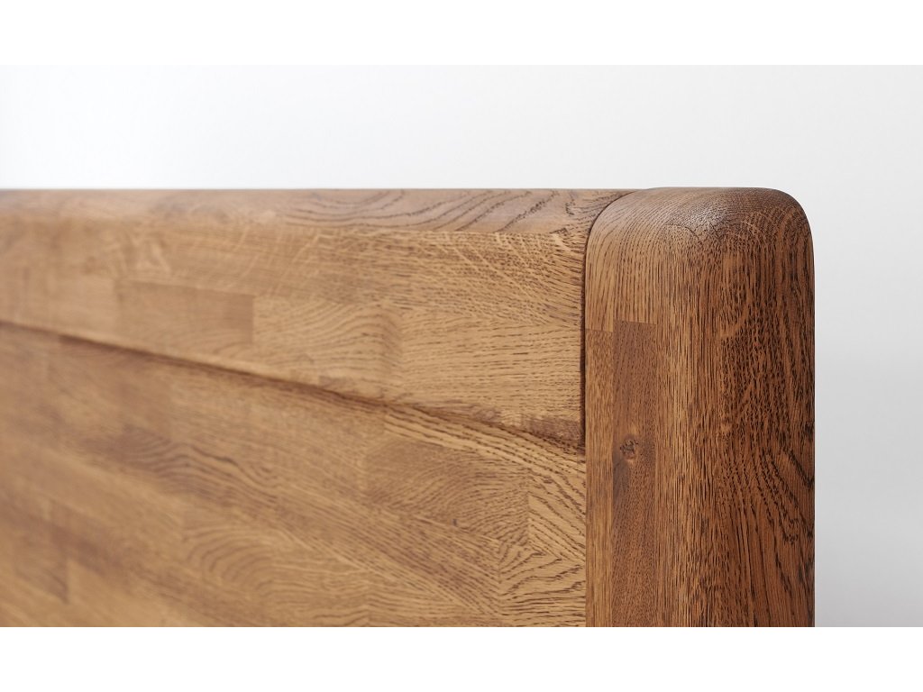 Elegance oblých tvarů. Moderní postel s členitým čelem v sobě spojuje praktické využití s dokonale propracovanými liniemi. Její masivní vzhled je určen zejména do prostornějších ložnic. Plnost masivního čela vytváří pocit solidnosti a jistoty, který se důmyslně doplňuje s jemně zaoblenými hranami po celé konstrukci postele.Vysoce kvalitní postel české výroby zajišťuje pohodlné a zdravé ležení. Postel má zvýšenou lehací plochu, kterou si můžete individuálně nastavit podle svých představ nebo s ohledem na výšku vámi vybrané matrace. Vysoká lehací plocha umožňuje pohodlnější vstávání a uléhání do postele, což ocení všichni uživatelé bez rozdílu věku.Standardně se nabízí v těchto rozměrech: